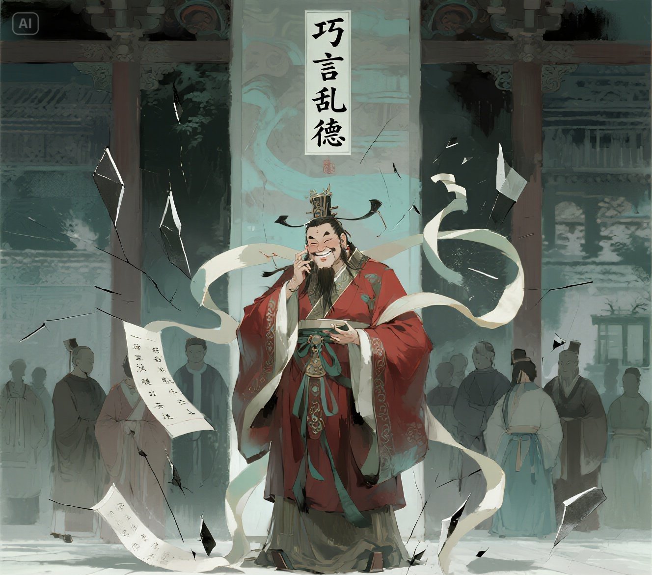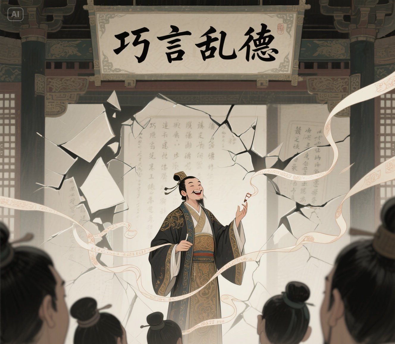 Confucio dijo: «Una retórica ingeniosa puede corromper la integridad moral».(巧言亂德)